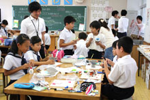 これは、平成27年夏に開催される「おおいたトイレンナーレ」のプレイベントの一つで、レディ・メイドワークショップ「変身!トイレ!!」と題し、本学美術科学生と非常勤講師の指導の元、大分大学附属小学校の4年生約120名がクラフト粘土等による造形作品に挑戦しました。