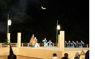 翌日14日には、竹田城下町で開催された「竹田アートカルチャー」を取材しました。竹田のまちなかには、竹田市の空き家再生・移住促進事業などによって若いアーティストが集まりつつあります。竹田中心市街地で行われた「竹田アートカルチャー2014」には、竹田に移住したアーティストなどが参加しています。夜行われた竹田薪能では稲葉川につくられた特設ステージにて薪の灯りで能や狂言などが演じられました。