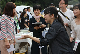本学学生は、参加者の受付や案内といった手伝いをするなどして、地元の方々、訪れた観光客と交流を深めました。