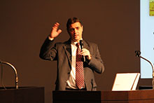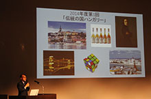 その後、大使が登場。ハンガリーの地理や歴史、自然をはじめ、ご自身の生い立ちやこれまで歩まれてきた道など、日本語が堪能な大使は通訳を介さず、時にユーモアを交えながら熱く語ってくれました。この中で、大分のように、ハンガリーにはさまざまな温泉があること、ワインの産地が22ヶ所もあり、貴腐ワインは特に有名であることなど、ハンガリーについての魅力が紹介されました。