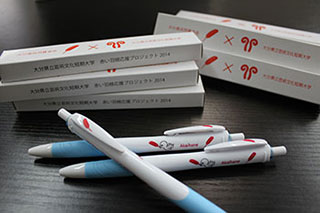 このプロジェクトは、共同募金会と本学がコラボして行っている活動で、ボールペンのデザインと販促活動を本学の学生が担当、募金を集めています。この活動は昨年も行っており、今回で2回目となります。