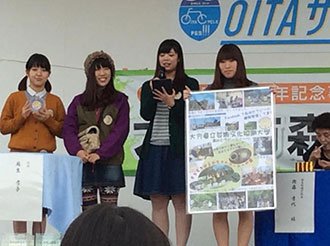 大分市森林セラピー事業「森のスイーツコンテスト」が11月2日、ホルトホールで開催され、本学学生が試行錯誤を繰り返して作った「モチモチはるかちゃんロール」を発表しました。
