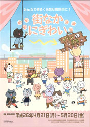 街中が賑わっている様子を、可愛らしい猫のイラストで表現しています。街なかでチラシを見かけたら、ぜひ手にとってみてください。