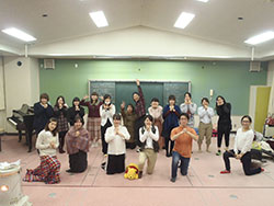 雪もチラつく寒い中Opera piena di vitaサークルの学生達が合宿に訪れました。みんな一生懸命、楽しく練習に励んでおりました。キャンパス内に広がるピアノの音、綺麗な歌声、笑い声、とても心地よく、いいもんです。みんな本番に向けて頑張れー。