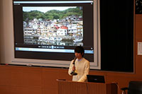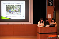 商店街と本学学生が主体となって行うイベント「府内学生フェスタ」について、当日のスケジュールをおって活動内容を細かく説明しました。また、準備段階での反省点等もあげ、来年度の活動に生かすよう、改善点も述べました。