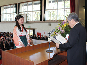 今日皆さんは、二年または四年間過ごしてきたこの上野丘のキャンパスを、次の目標に向けて巣立って行くことになります。これまで、学生同士、学生と先生や事務局スタッフの距離が近い、言い換えれば家庭的環境の中で学んできたことは、人生の中で貴重な経験であり、多くの思い出を胸一杯に巣立って行くことでしょう。