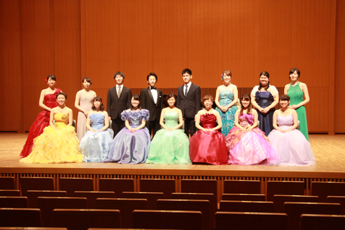 会場には家族や友人が多く詰めかけ、素晴らしい演奏に対し温かい拍手が贈られました。中でも難関の東京藝術大学音楽学部声楽科への合格を果たした牧山亮(Bas.)さん、佐藤克彦(Ten.)さんの二人には、祝福の声援が贈られました。最後に、出演者を代表して佐藤さんが、家族、先生への感謝と卒業後の抱負を述べて、演奏会を締めくくりました。