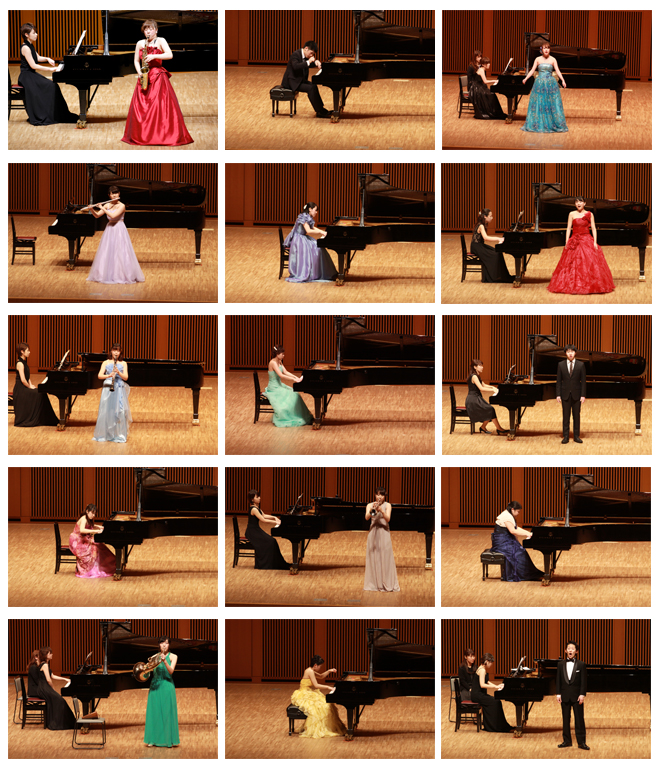 平成25年度から新たに募集した楽器であるサクソフォーンでの最初の卒業生から演奏会は始まり、ピアノ、声楽、管楽器と、それぞれ分野で難曲にチャレンジ。わずか2年間の学生生活でしたが、その成長にはめざましいものがありました。