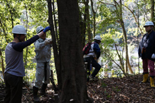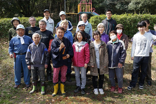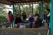 上野の森の清掃や整備活動を毎月第4日曜に行っている「おおいた上野の森の会」に3月22日、参加しました。この日は、大分県森林ボランティアの活動について、OBSテレビ「おおいた捕り物帳」の撮影がありました。放映は4月13日(月)18:55から18:59の予定です。活動のあと、手作りの草餅をみんなでいただきました。
