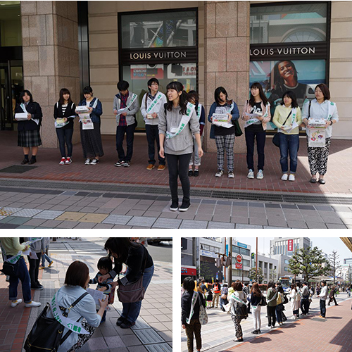 4月18日(土)・19日(日)、第90回あしなが学生募金が行われました。18日は13人、19日7人の本学学生が参加しました。25日(土)・26日(日)にも、大分トキハ前・別府駅などで10時から18時まで同募金が行われます。