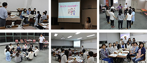今回は、情報コミュニケーション学科の心理スポーツコースの教員3名(吉山・洲・藤田)と日本教育推進財団認定トレーナー(石本)が担当。「出会い」「コミュニケーション力」「チーム作り」「子ども理解」をテーマに4回の講座を行いました。どの回も、受講生の皆さんにコミュニケーションの実習(エクササイズ)を体験していただきながら、自分の意思や考え、気持ちを上手にシェアするにはどうしたらよいかを共に学びました。