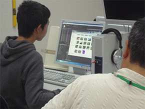 写真は、芸短大学内で撮影された動画をメディア演習室で編集している様子です。皆さん、講師のアドバイスやお互いの作品を参考にしながら、真剣に取り組んでおられました。