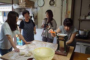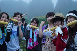 7月18・19日、情報コミュニケーション学科学生1・2年18人が参加して、たけた食育ツーリズム研修に行ってきました。18日は、竹田城下町を散策、その後、元岡本屋で竹田農家民泊グループ「きちょくれたけた」の皆さんと顔合わせを行いました。各農家に別れて、農家体験を楽しみました。翌日は朝5時に卯野農場に集合、とうきび(トウモロコシ)畑に向かいました。夜明け前のメロンより糖度の高いスイートコーンを畑でいただき、フィリッピンの研修生の方々と収穫体験を行いました。10時から道の駅すごうで行われた「とうきびフェスタ」をお手伝いを行い、菅生のとうきび「すごあまコ~ン」をみんなに知ってもらう活動を行いました。