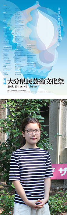 10月から11月にかけて開催される「第17回 大分県民芸術文化祭」のポスターを美術科デザイン専攻2年の三野彩夏さんがデザインしました。「今までにない試みでしたが採用されて嬉しいです」と語る三野さんに制作の経緯などを伺いました。