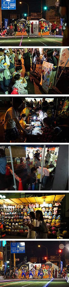 平成27年7月23日(木)19:00~21:30サービスラーニングで鶴崎清正公二十三夜祭に参加。国道一番のステージ(風神雷神)を制作。情報コミュニケーション学科1年淵崎くんが国道一番決勝に進出して健闘して4位でした。エコステーションをつくって子どもたちにゴミを集めてもらい、ボーリングや輪投げを楽しんでもらいました。また、まつりを楽しめない小さい子どもたちのためにポップカードやうちわづくりのワークショップを行った。どちらも150人以上の子どもたちが来ていました。 2ヶ月前から毎週木曜日に集まって36名の実行委員が準備し、当日は学生80名が参加しました。