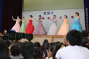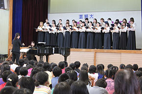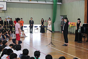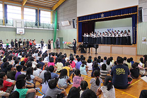 児童たちから「とても上手な演奏をありがとうございます。みなさんのように歌ったらきれいにビリーブを歌うことができました」とお礼の言葉を頂きました。学生にとっては音楽家として聴いてもらう楽しさや難しさなどを実感する場になりました。