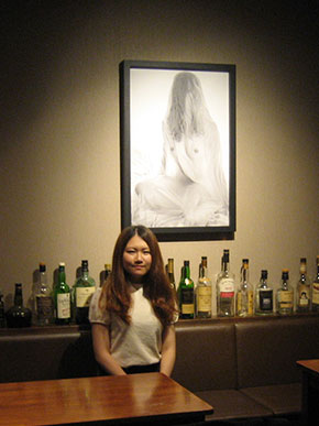 ビル1階のバー「LEFT ALONE」には西山愛莉さんの写真作品が展示されています。大人の世界に踏み出す、少女から女性へと変わる複雑な心情と、一歩先へ進む気持ちの、純粋な美しさを表現しています。絵画のようにも見える、モノトーンの作品の数々がほの暗いバーにしっくり“Fit”しています。作品展について西山さんは「性と貞操観念について改めて考え、認識するきっかけになれば。そして、美しいと感じてもらえれば十分です」と話します。