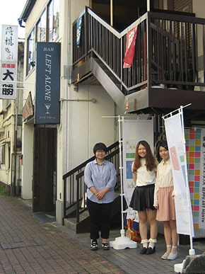 また、明日9月19日(土)は14時から芹沢高志氏(混浴温泉世界総合ディレクター)と菅章氏(大分市美術館館長)をゲストに、各会場を巡回しながら作品についての説明会を行います。その後、会場の一つである「LEFT ALONE」にて軽食を交えて交流会を開催します。多彩な作品空間を味わうイベントです。ぜひご参加ください。参加無料。