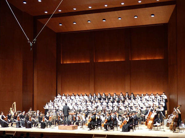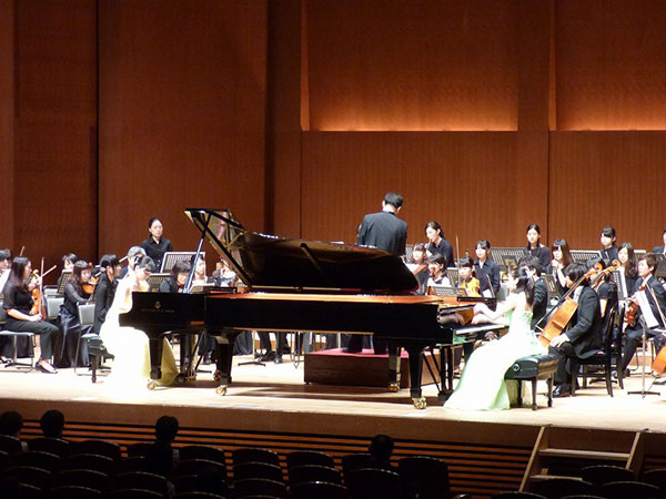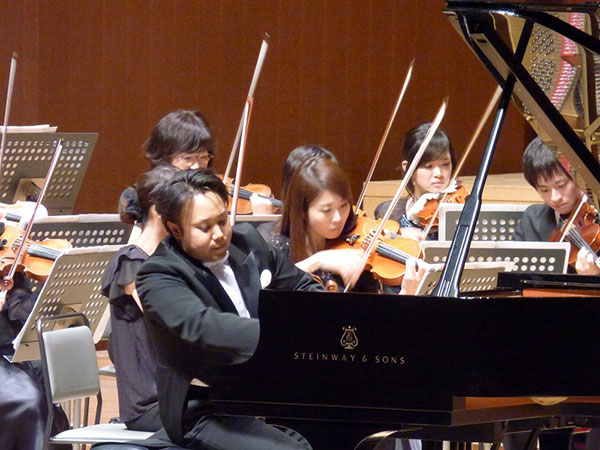 今年のプログラムはピアノ・コースに重点を置いたものとなっており、モーツアルトとラヴェルのピアノ協奏曲をメインに置き、そこに合唱曲としてブラームスのドイツ・レクイエムより第2楽章、そしてムソルグスキー作曲/ラヴェル編曲の組曲『展覧会の絵』を配しました。どのステージも甲乙つけがたい熱演でしたが、とりわけラヴェルのピアノ協奏曲でピアノを担当した学生には、ひときわ盛大な拍手が送られました。