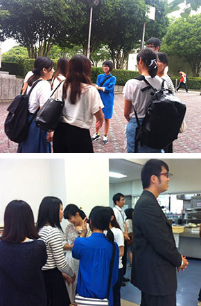2 また、7月10日(金)~12日(日)には、マレーシア短期留学で交流をもったタイの大学(Prince of Songkla University)から教員1名・学生1名が本学を訪問し、10名の学生が学内で、5名の学生が大分市中心市街地で、2名の学生が別府市で交流を深めました。