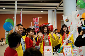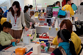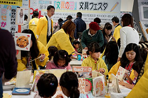10月31日(土)・11月1日(日)、大分県文具・事務機商組合連合会が行う「文具フェスタ」にサービスラーニングで参加しました。赤い羽根ボールペンのコーナーを開設したほか、スタンプづくり・布テープバッグづくり・折り紙工房・エポンテスタンプなどの体験工作コーナーをお手伝い、体験参加者のみなさんに、募金をお願いしました。おおいたワールドフェスタ・フェアトレードコーナー参加の学生さんにも協力していただきました。