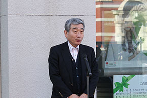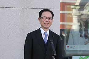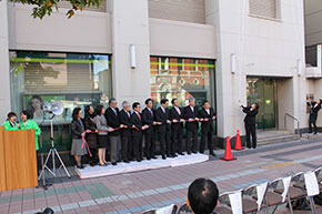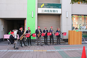 開会式では、大分県職員吹奏楽団が「勇気100%」や「赤鼻のトナカイ」などを演奏し、式を盛り上げました。そして、佐藤樹一郎・大分市長、中山欽吾学長らがあいさつをしました。佐藤市長は、「商店、企業そして市民、芸短の学生のみなさんが一緒になって大分のにぎわいを作っています。このイベントをきっかけに個性ある商店街を楽しんでもらい、今後ますますにぎわいを作っていければと思います」、中山学長は「本学の学びを通して学生の大分への愛着が年々増しています。この活動もその一つです。ワクワクする街になるよう、本学はこれからも努力します」と話しました。また、三井住友銀行大分支店の和田友宏・大分支店長は「街に出てくる楽しみになれば」と語りました。