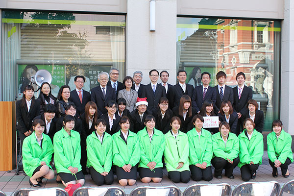 このイベントを行った本学情報コミュニケーション学科の地域総合連携研究室(地総研)の阿部りなさん(1年)は「最初、『銀行をラッピング』という話の規模が大きすぎて理解が難しかったです。しかし、この活動を通して段取りの大切さを実感しました」、小野桃さん(同)は「ここまでに、計画通り進まないことに直面するなどして大変でした。大雑把ではなく、細々とした計画をたてることの重要性を学びました」と語り、晴れ晴れとした笑顔を見せました。