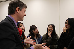 特別講師ドイッチュさんの専門は現代アメリカ映画史。学生と一緒に「夜の大捜査線」(1967年)、「ミーン・ストリート」(1973年)、「スモーク・シグナルズ」(1998年)の3本を鑑賞しました。各作品の上映前には作品説明や見所、考えてほしい点などを話しました。