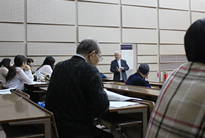 チェンバロやピアノ、指揮など、世界で多方面にわたり活躍する小林道夫客員教授による声楽公開レッスンが12月12日(土)、本学小ホールで開かれ、受講した11名の学生ひとりひとりに合わせた丁寧な指導が行われました。同時に伴奏のピアノの指導も行い、ひとつひとつの音の大切さを指導されました。聴講した一般の方々も熱心にメモをとっていました。