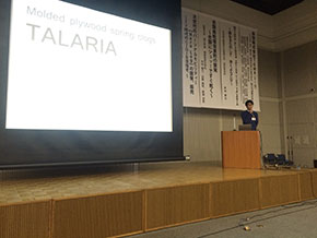 12月18日、第15回大学発ベンチャー・ビジネスプランコンテスト(主催 大学発ベンチャー・ビジネスプランコンテスト実行委員会<事務局:九州ニュービジネス協議会>)で、専攻科造形専攻プロダクトデザインコース尾崎勝也君の事業名「Molded plywood spring clogs TALARIA」という新しい木製履物のビジネスプランがNO.1のグランプリに輝きました。