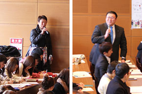 大分青年会議所理事長の中島さんは「大分青年会議所は『おおいた活性化ネットワーク』を行っています。分かりやすく説明していただきました。この活動は大分のためになります。また青年会議所は経営者の集まりなので、この縁が将来きっと役に立つでしょう」と話し、NPO法人「共に生きる」の江藤代表は「学んだことをつないでいって、大分、地域で活かしてほしいです」と学生たちに語りかけました。ほかにも「こんなに芸文短大が活動しているとは知らなかった」「来年度はもっとタッグを組んで色々な活動をしたい」「大学で学び、発表したことを続けていくことが大切です。自分の中で育ててください」など、さまざまな方から感想・意見をいただきました。
