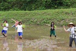 大分市でも過疎化が進む周辺農村。学生が手伝うことにより、地域を活性化することはできないか、楽しみながら地域活動する「地球の小っちゃな田ノ口で遊ぼう」の活動を行っています。
