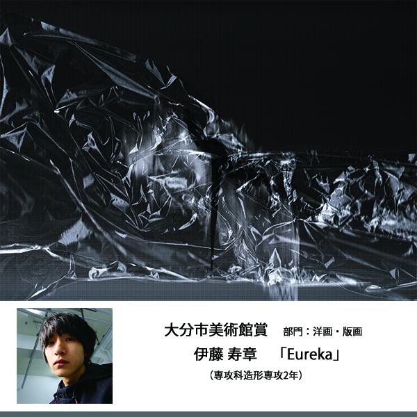 大分市美術館で開催中の第50回記念大分市美術展で、本学専攻科造形専攻2年の伊藤寿章さんが版画作品「Eureka」で「大分市美術館賞」を受賞しました。