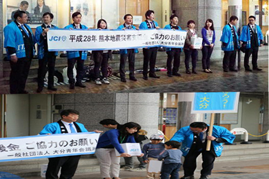 4月20日(水)から25日(日)までの5日間、学んだことを地域で活かすサービスラーニングの拠点でもある本学の地域活動室の呼びかけに、31名の学生が集まり、大分青年会議所と協力して、大分駅上野の森口およびセントポルタ中央町商店街にて募金活動を行いました。