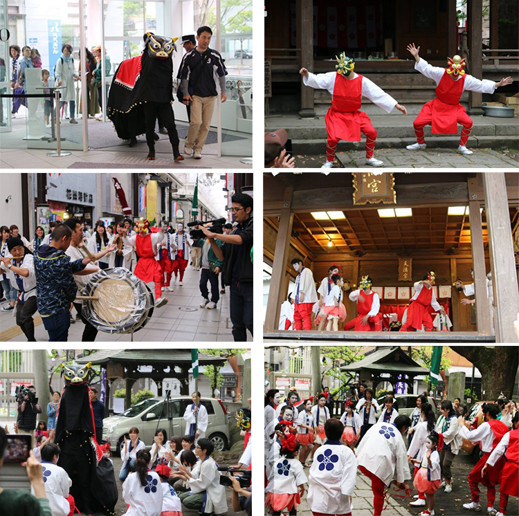今回プロジェクトの一環で、西新町天満宮に新たな丑舞を創り、その丑舞が大分県立美術館【OPAM】の1周年を記念するイベントとして4月24日(日)に初披露され、本学学生16名が参加し一緒に盛り上げました。学生は、地域発展に貢献することや、地域住民の方との交流を通して、たくさんのことを学ぶことができました。