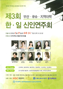 5月27日(金)、韓国 釜山にある新羅大学校にて「第3回 日韓新人演奏会」が開催され、本学専攻科音楽専攻ピアノコースを今年3月に修了した 今野 俊郎さんが、本学代表として選出され出演しました。