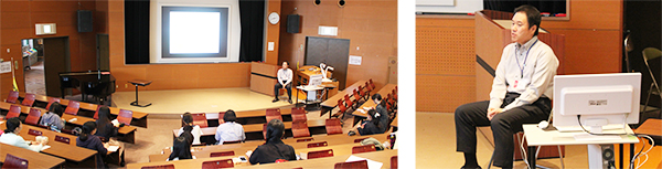 本学では、学生の進路決定をサポートするために、専門の職員と各学科の進路担当教員で運営する進路支援室が設置されています。6月29日(水)、人文棟1階大講義室にて、進路支援室 坂口課長によりガイダンス「人間関係と仕事~離職しないために~」が、就職活動中の学生を対象に行われました。