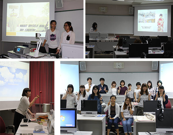 PowerPointを使用し、彼女たちは英語で自己紹介をしては、自国の大学や観光名所、そして有名な食べ物(トムヤムクン、グリーンカレー、ドリアンなど)についても楽しく説明をしてくれました。