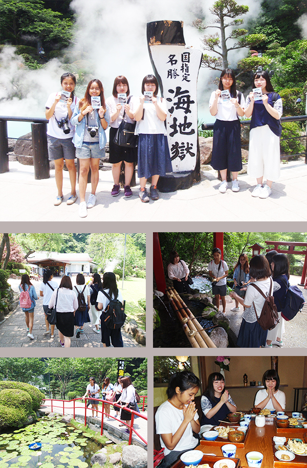 国際交流後の週末、本学の学生有志たちが、留学生を別府 海地獄へと案内しました。地獄を初めて見た留学生は大興奮でした。お昼にとり天も食べて大分・別府を満喫しました。