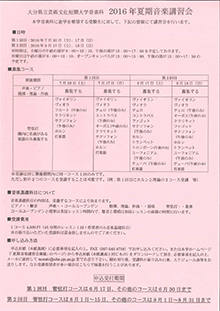 2016年夏期音楽講習会 第2回参加者募集が始まりました。