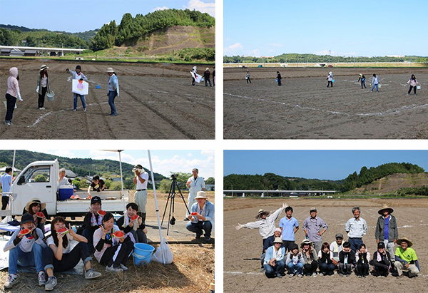 サービスラーニングで、中津市三光コスモス祭りの種まきに行ってきました