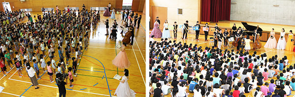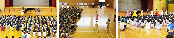 オペラで参加した学生は、「いつも演奏しているホールではなく体育館ということで声が響かずなかなか難しいところもありましたが、児童も喜んでくれて、とても楽しかったです。」と話し、学生にとってもいい経験になったようです。