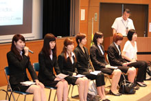 「就活をふりかえってみて」「それぞれの企業・業界を選んだ理由」「エントリーシートや履歴書を作る際に工夫したこと」「集団面接でのエピソード」など具体的な内容に、いままさに就活で頑張っている学生たちはメモをとりながら、真剣に聞き入っていました。