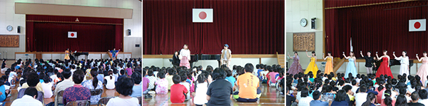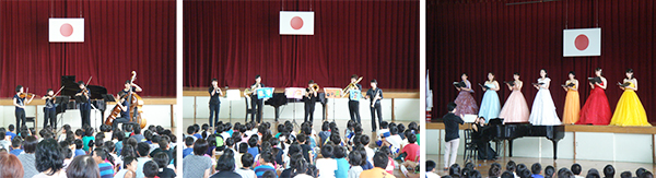午前中の運動会の練習の疲れも忘れたかのような、興味津々で鑑賞した児童から大きな拍手で見送られた学生たちの表情は、達成感と自信に満ち溢れており、巡回演奏会の素晴らしさが理解できた公演となりました。