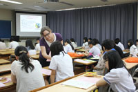 「学科紹介」「学科入試説明」「在学生によるキャンパスライフ紹介」「ネイティブ教員と楽しく学ぶ語学体験」「入試・学生生活相談」などを行いました。「ネイティブ教員と楽しく学ぶ語学体験」では、英語・中国語・韓国語などのミニ授業を実施、単語や簡単な会話などを学びました。また「在学生によるキャンパスライフ紹介」では、学生たちが海外語学実習の様子を紹介、授業やボランティア、観光の様子をスライドを使って伝えました。