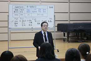 教務学生部長の洲(すが)部長は「専門の勉強だけでなく、一般的な教養も身に着けてほしい。責任を持ち、ルールを守って楽しい学生生活を送っていただきたい。」と新入生への期待を述べました。