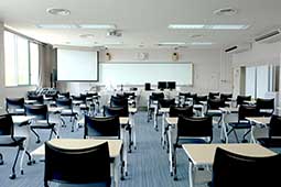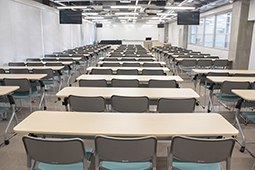 授業や研究発表のほか講演会などにも使用できる学内で一番大きな講義室です。