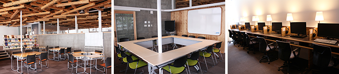 図書館に加え、学生が談話、学習が行えるラーニングコモンズを備えています。