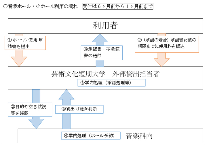 ・音楽ホール、小ホールを利用する場合は、「音楽ホールの利用について(必読)」の確認をしてから申請してください。
